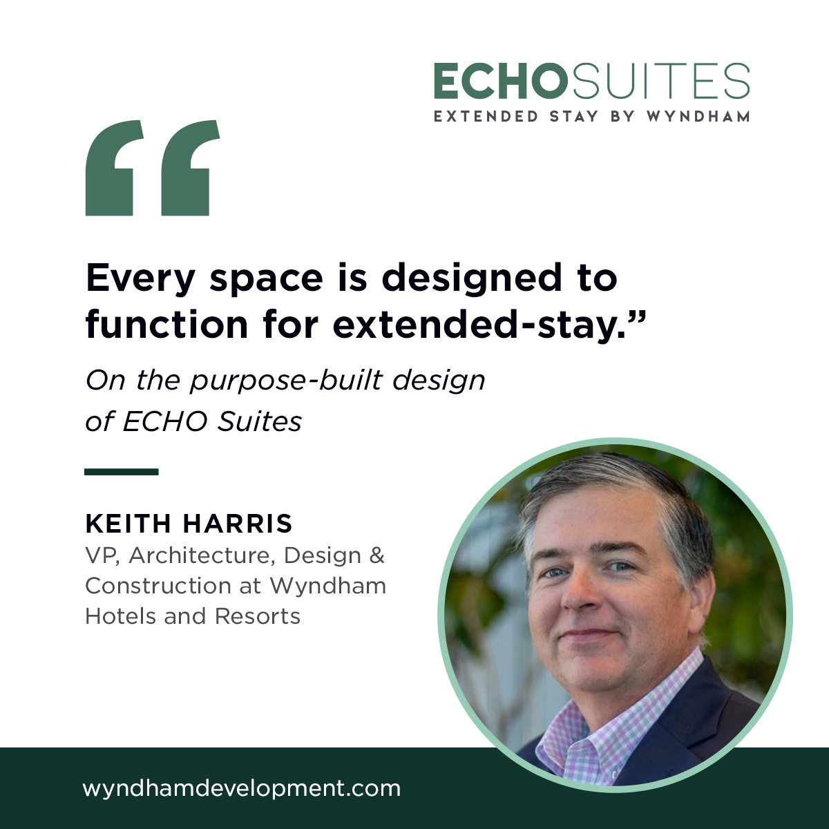 While there’s no “perfect” time to take the plunge and build a hotel, current conditions, coupled with strong market performance, make an ECHO Suites Extended Stay by Wyndham a solid investment for owners. Harris puts it simply: “There’s never a Goldilocks moment for when to pull the trigger. As the saying goes, the best time to plant a tree was 20 years ago. The next best is today.”