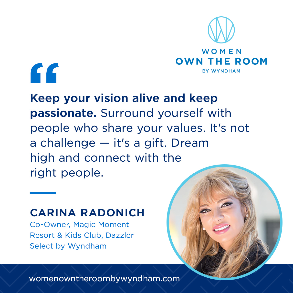For other women considering exploring hotel ownership, Radonich has clear advice: “Keep your vision alive and keep passionate. Surround yourself with people who share your values. It’s not a challenge — it’s a gift. Dream high, and connect with the right people.”